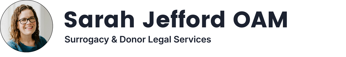 Sarah is a surrogacy lawyer who was herself a surrogate in 2018. She was awarded the Order of Australia in 2023 for her work in law and contributions to the surrogacy community. In 2025, she received a Churchill Fellowship to research surrogacy legal frameworks internationally, publishing the influential report "For Love and Law" that directly informed the ALRC review of Australia's surrogacy laws. For the ALRC review, she also led a community engagement campaign that ensured over 200 submissions from people with lived experience were included in the review. Sarah founded the inaugural Fertility Law & Ethics Symposium in October 2025 and is working to establish the Aus-NZ Association of Fertility & Surrogacy Professionals.